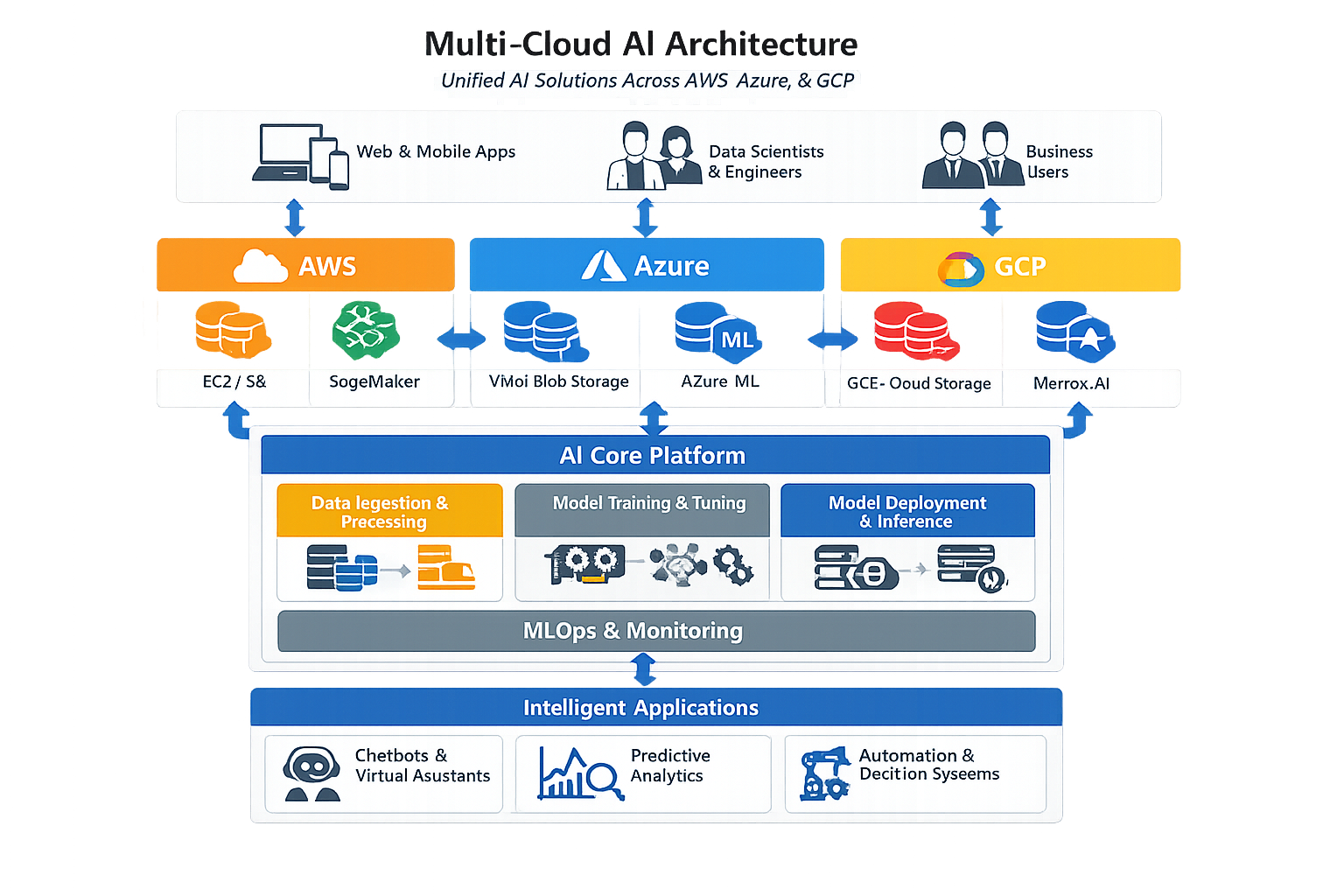 We design and implement AI-ready environments across Azure, AWS, and on-premise platforms.